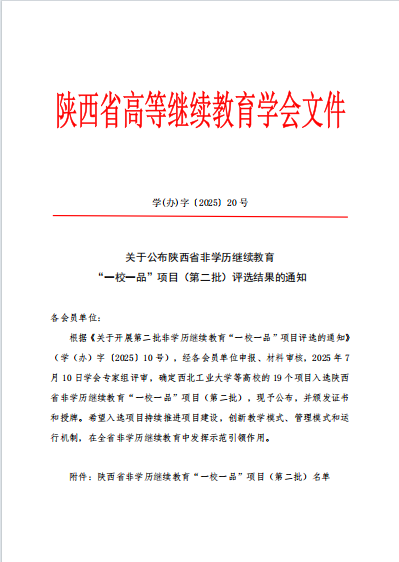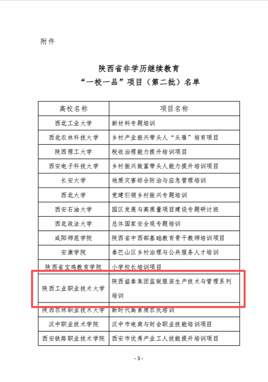 近日,陕西省高等继续教育学会公布了第二批非学历继续教育“一校一品”项目评选结果,我校申报的“陕西益秦集团监狱服装生产技术与管理系列培训”项目成功入选。