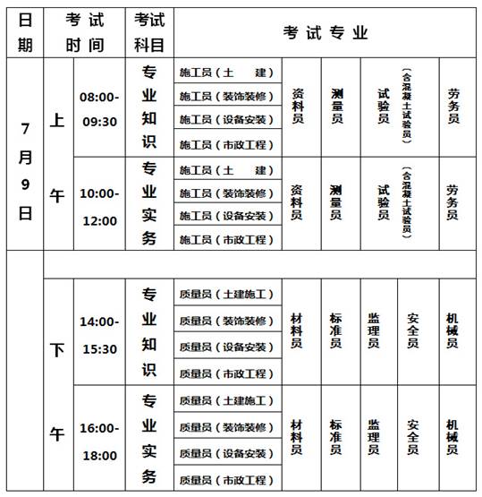 定于2016年7月9日(周六)考试,具体安排如下: