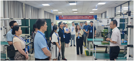 开班典礼前,伊逊智书记和培训学员现场观摩了马克思主义学院教学实训室、欧姆龙实训室、材料学院实训室、机加工中心和汽车实训室等地,段峻副院长陪同参观。