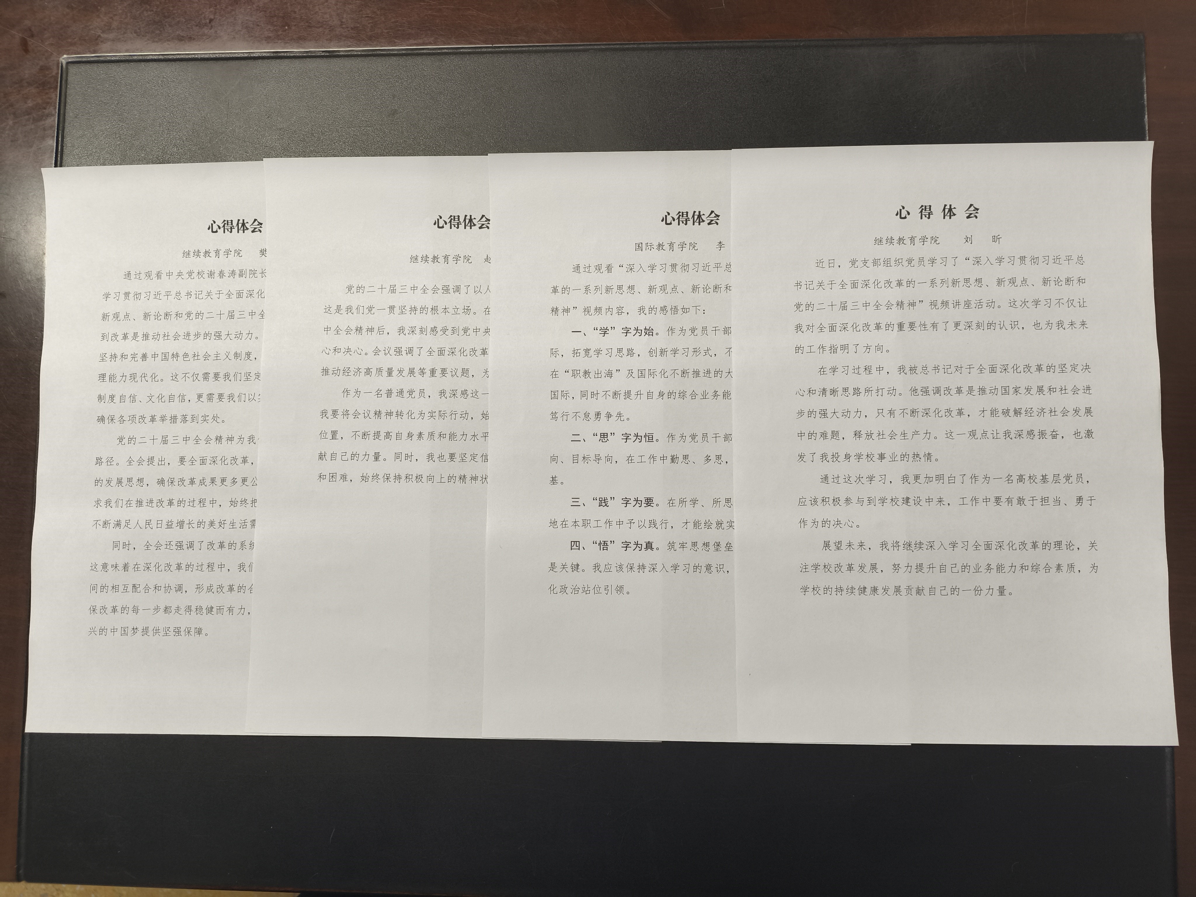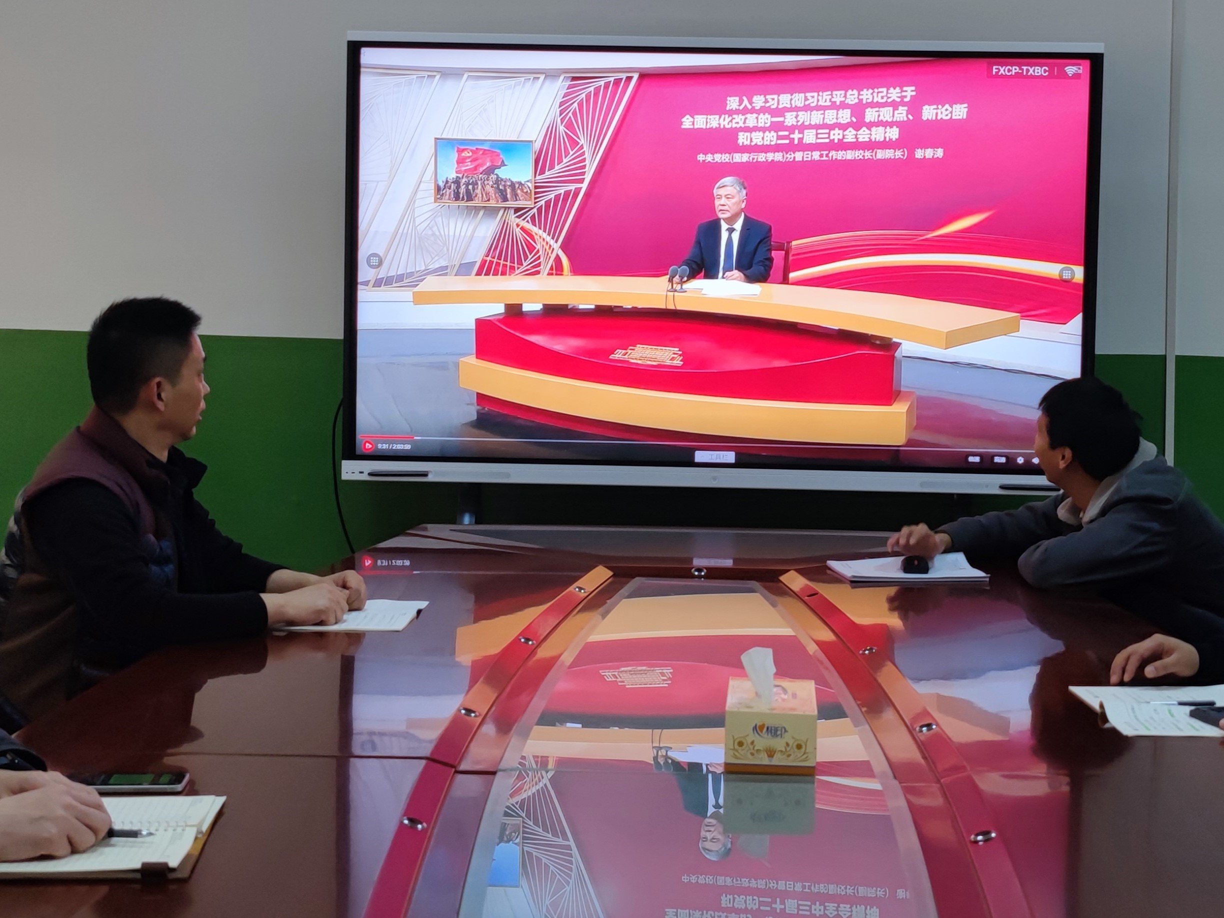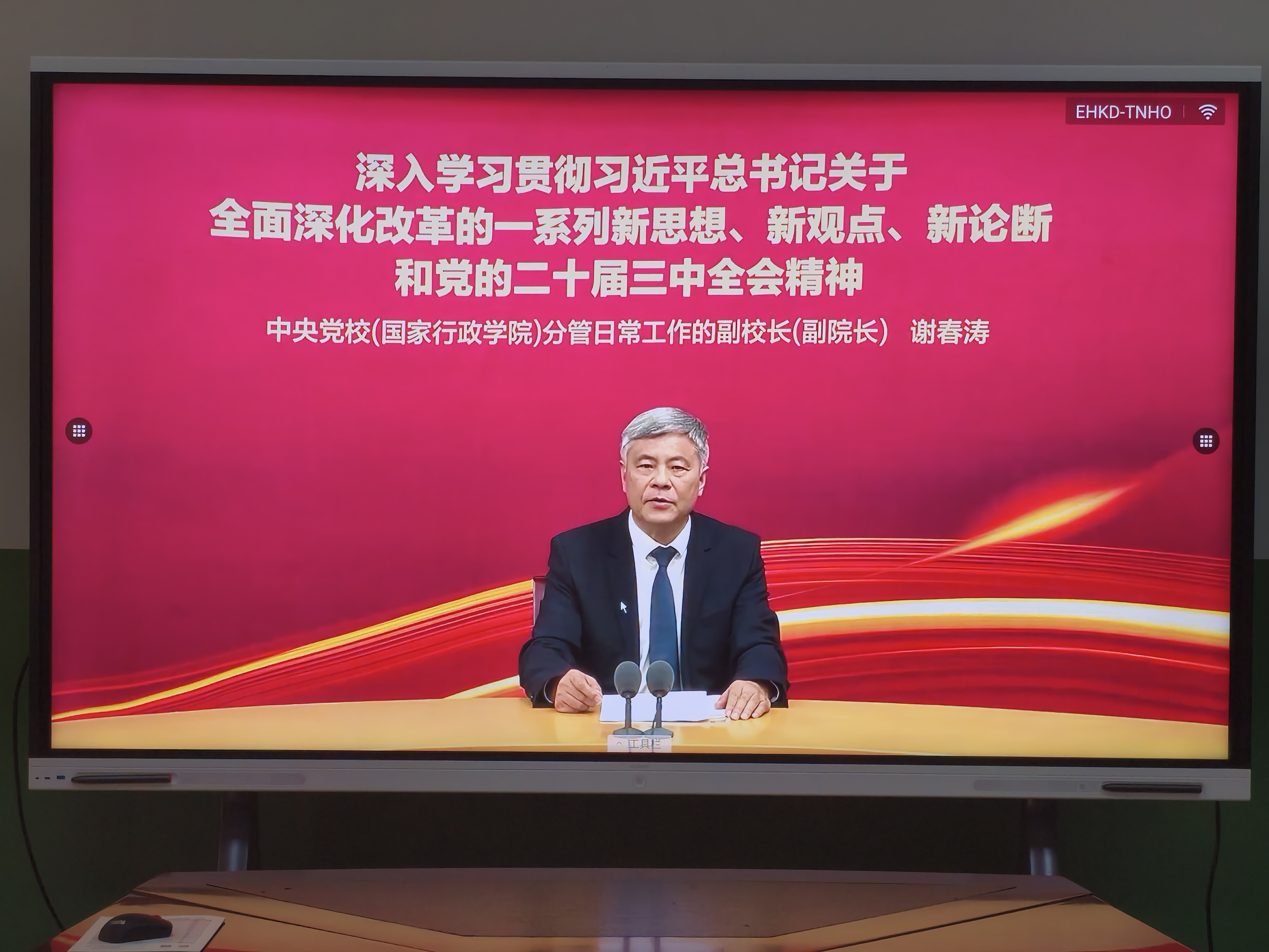 为深入学习贯彻党的二十届三中全会精神,近期,继教国际党支部书记贾严鹏组织处科级以下党员、群众观看学习了中央党校谢春涛副院长的视频课程---“深入学习贯彻习近平总书记关于全面深化改革的一系列新思想、新观点、新论断和党的二十届三中全会精神”。