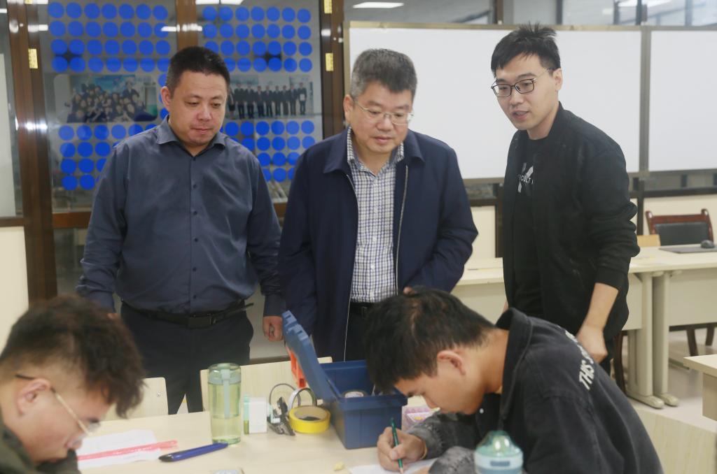签约仪式前,段峻副校长陪同与会来宾参观了学校汽车运营服务中心、土木实训室、焊接实训基地、欧姆龙实训室和马克思主义学院。