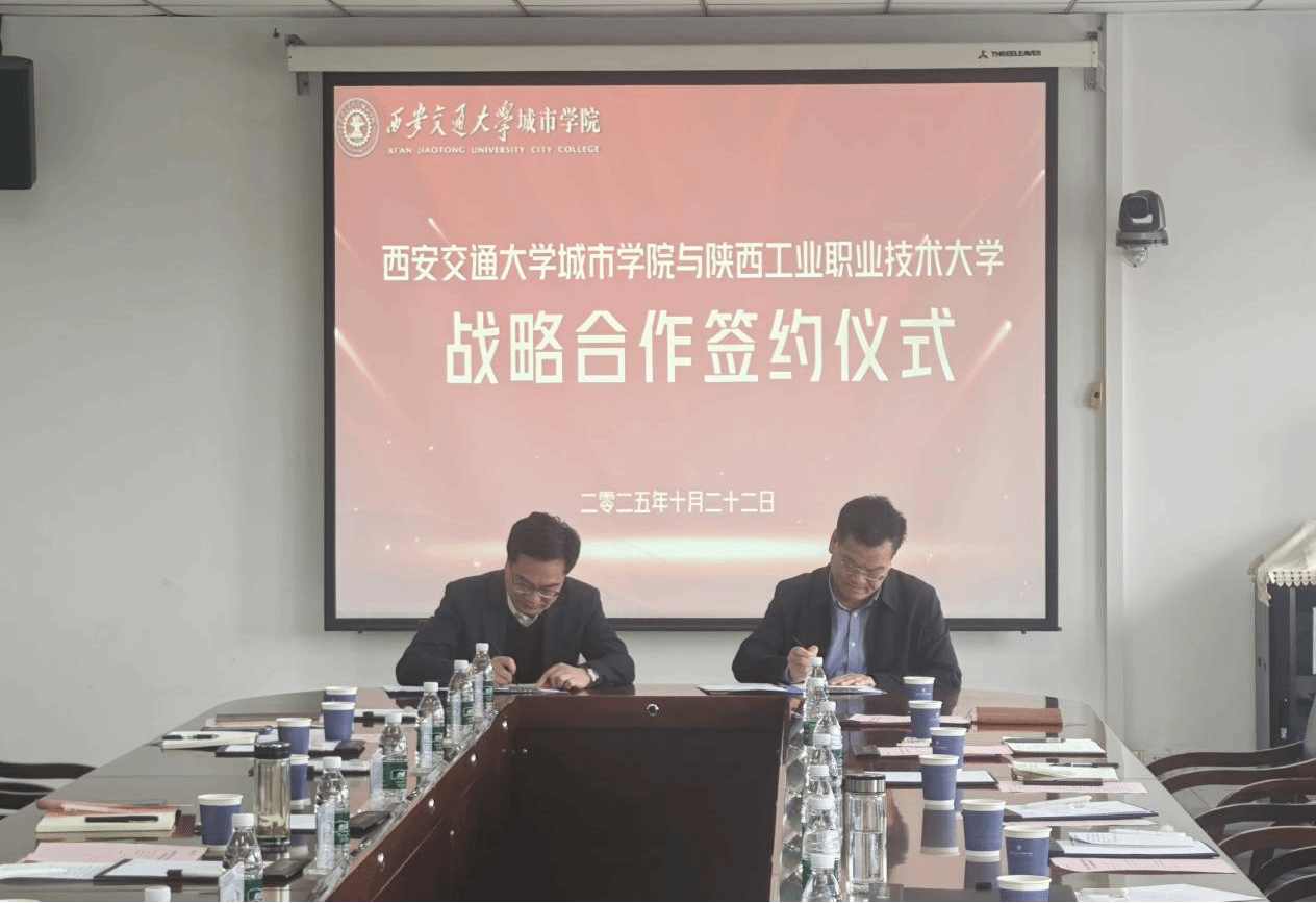 10月22日上午,我校校长刘永亮,党委副书记贺天柱,相关部门和二级学院一行14人赴西安交通大学城市学院交流座谈,并签署框架协议。此次合作旨在深化产教融合,推动应用型本科教育与职业教育的协同创新,为区域人才培养注入新动能。会议由交大城市学院副校长朱旭主持,校长王永泉教授和相关部门参加座谈。