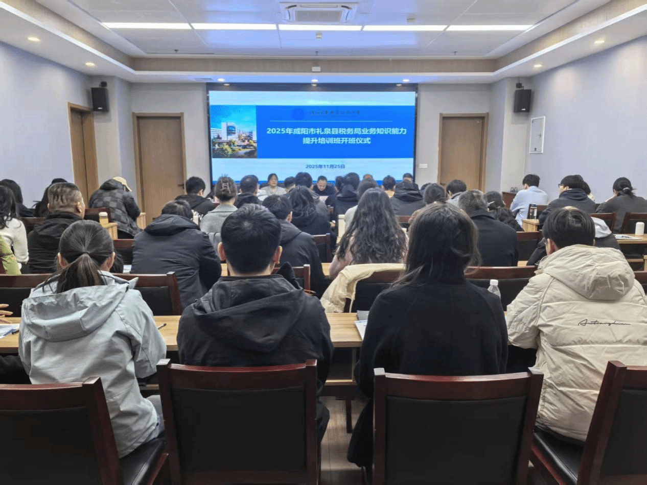 11月25日,2025年国家税务总局咸阳市礼泉县税务局业务知识能力提升培训班开班仪式在我校经开校区启新楼举行。礼泉县税务局党委书记、局长赵波,副局长田燕清,我校党委委员、副校长梅创社,继续教育与培训学院院长闫军,财经与旅游学院党总支书记吴姗娜,以及培训管理人员、全体参训学员60余人参加了开班仪式。仪式由闫军主持。